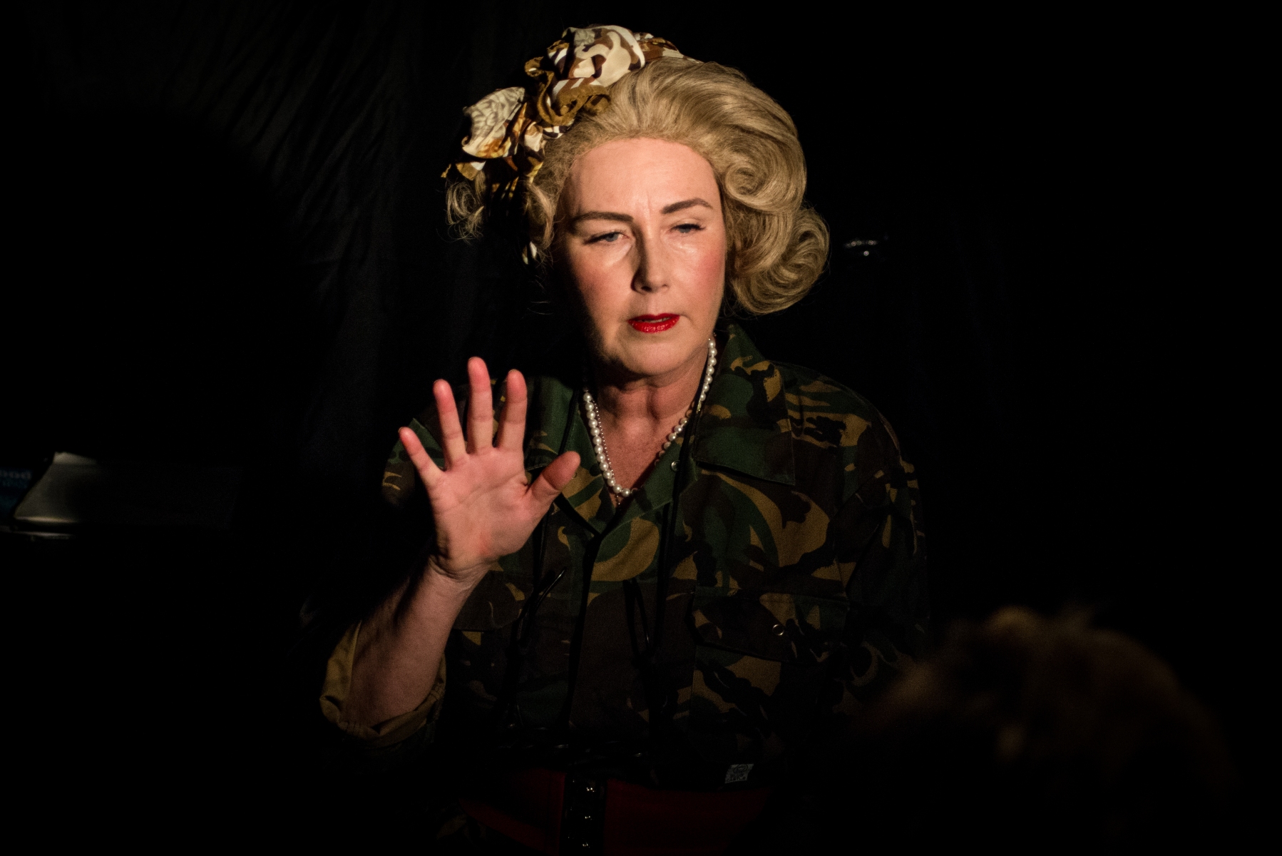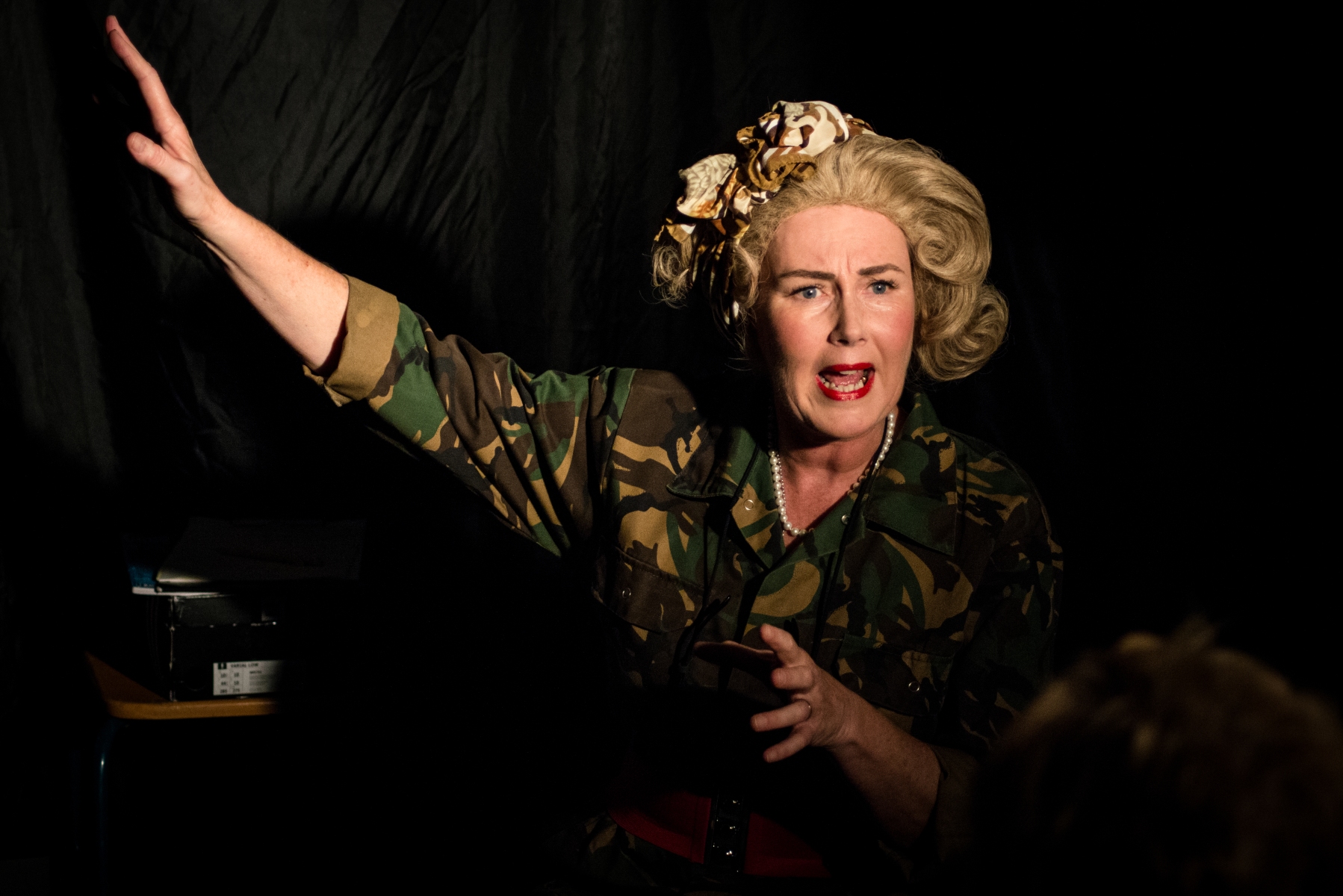 Katie Richardson performing ‘#TEOTWAWKI’ (The End Of The World As We Know It), a solo show about a troubled mother trapped in a post-apocalyptic bunker, as part of Edinburgh Fringe in 2018. 12...4►